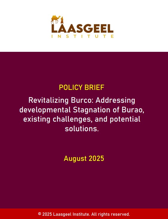 Burco, the second capital of Somaliland, faces economic and developmental stagnation caused by restrictive “red zone” policies, lack of decentralization, inequitable taxation, weak political representation, and neglected infrastructure. A civic forum convened by the Laasgeel Institute in July 2025 outlined urgent reforms, including reopening Burco Airport, revising the Unified Taxation Law, expanding decentralization, and strengthening accountability mechanisms. Revitalizing Burco is vital to unlocking its economic potential, reducing youth unemployment, and advancing Somaliland’s national development, equity, and resilience.