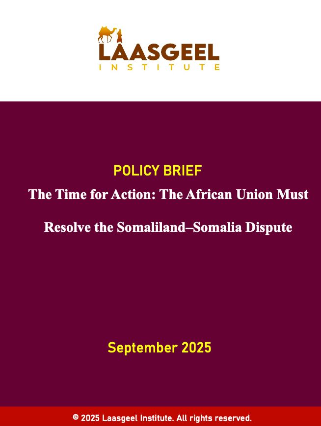 This policy brief urges the African Union to resolve the long-standing dispute between Somaliland and Somalia. It asserts that Somaliland’s case is not an act of secession but a lawful reclamation of its previous statehood, grounded in the principle of state continuity. The State of Somaliland and Italian Somalia never formed a ratified union, rendering the union legally invalid. On this basis, Somaliland rightfully regained its sovereignty in 1991.